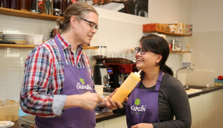 2014 eröffnete der 45-Jährige gemeinsam mit seiner indonesischen Frau, der Germanistin Rini Yunita, in Prenzlauer Berg ein Surabi-Bistro.