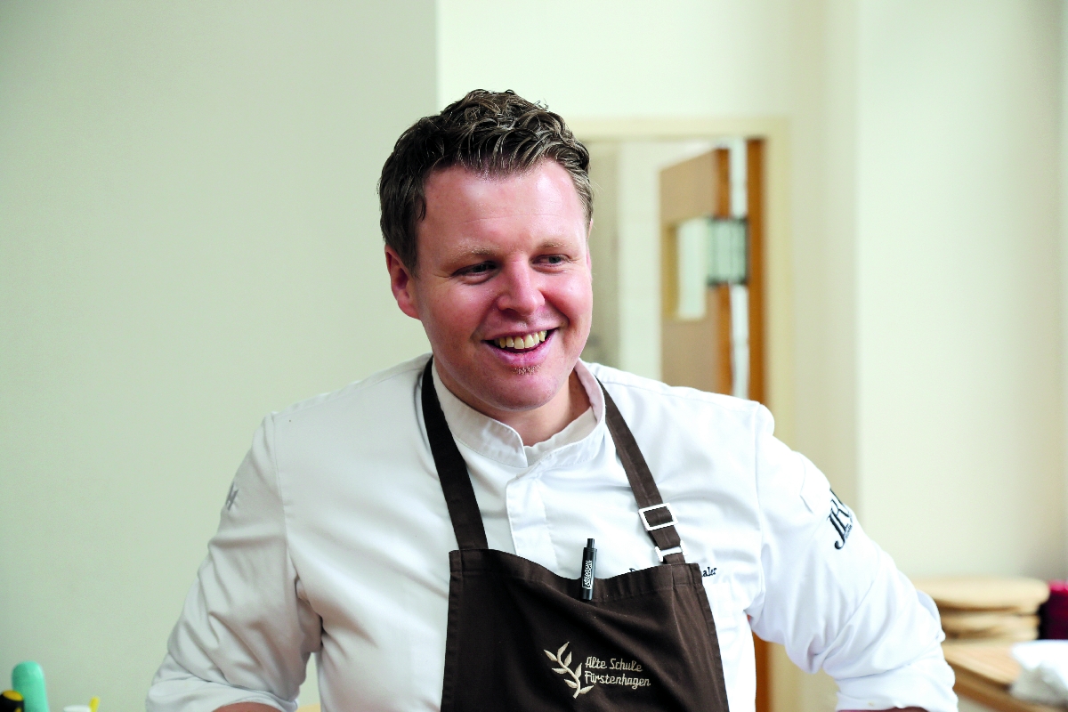 Der 35-Jährige wurde zum Meisterkoch der Region gewählt. Die Begründung der Jury: „Er verfolgt eine individuelle kulinarische Philosophie, die Bodenständigkeit und Gourmetanspruch harmonisch vereint. Aus regionalen Produkten wie Fisch und Fleisch, die er zu 80 Prozent von heimischen Erzeugern bezieht, kreiert er eine gehobene Landküche voller geschmacklicher Überraschungen“. Noch größer dürfte allerdings das Erstaunen der Alte-Schule-Gäste sein, wenn sie statt einer Menükarte eine freundliche Absichtserklärung in die Hand gedrückt bekommen.