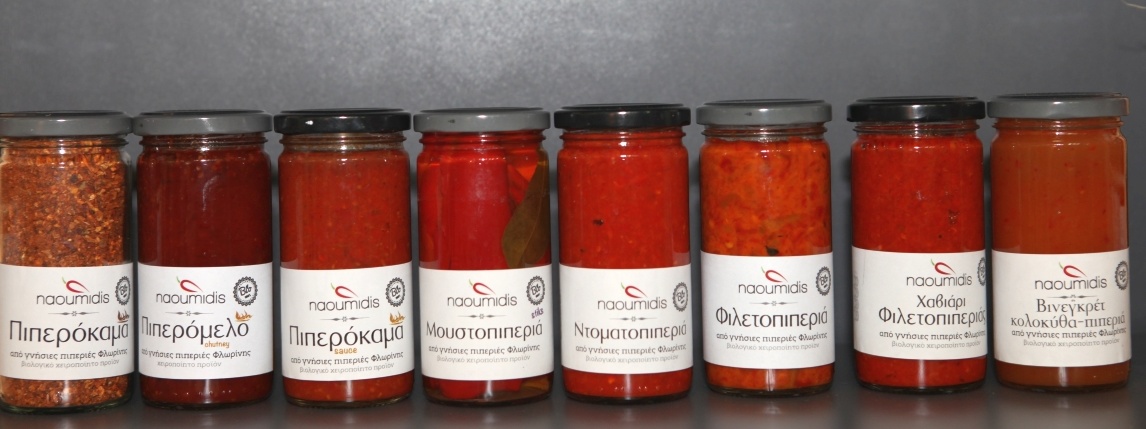 Naoumidis – der Name steht für eine griechische Großfamilie, die in Florina zu Hause ist, einer 33.000-Einwohner-Stadt in Makedonien, im Norden des Landes, rund b130 Kilometer westlich von Thessaloniki. Und er steht für eine Reihe von geschmacklich einzigartigen Produkten aus den in dieser Region heimischen roten Florina-Peperoni, die in dem milden und trockenen Mikroklima der Gegend ihre besondere Aromatik voll entfalten können. Die Geschichte dieser Produkte – es handelt sich um Saucen, Marmeladen und jede Menge andere Zubereitungen in Kombination mit Gemüse und Kräutern – begann vor über zehn Jahren im Restaurant Naoumidis in Agios Panteleimonas, einem Ortsteil von Florina.