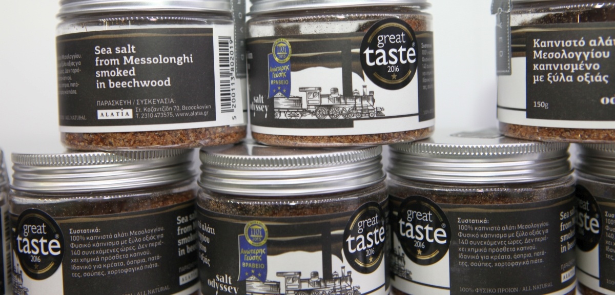 Griechenland ist ein Salzland – bei so viel Meer ringsum allerdings auch kein Wunder. Dementsprechend zahlreich sind auch die Natriumchlorid-Offerten auf der Athener Food Expo 2017. Alle naturbelassen, ohne Bleichmittel und Rieselhilfen, die meisten in aufmerksamkeitserregenden Verpackungen. Wir entschieden uns für das Angebot von Salt Odyssey, einer Manufaktur aus Thessaloniki. Gründer der Unternehmung sind der 45-jährige Zahnmediziner Mario Karaslidis und sein Freund Harry Sionas, 43 und Bauingenieur von Beruf.