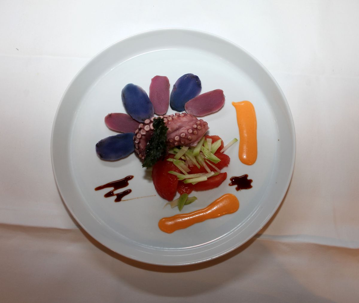 „Perú mucho gusto“, so steht es auf den Fliesen hinter dem langen Anrichttresen. Was das bedeutet, hat Enrique Serván davor in mehreren Dutzend Schüsselchen aufgebaut: Amaranth, Andenkartoffeln, Kiwicha, Maniok, Oca, Quinoa, Tamarinde, Zuckerrohr… Die Präsentation der peruanischen Alltagsprodukte – die meisten davon gelten hierzulande als Super-Exoten – das ist wirklich eine gute Idee! Gut ist sicher auch, dass sich der Küchenchef nicht auf eine wie auch immer geartete Modernisierung seiner Gerichte einlässt, wie sie beispielsweise der Gault Millau im vorigen Jahr (13 Punkte) anmahnte.