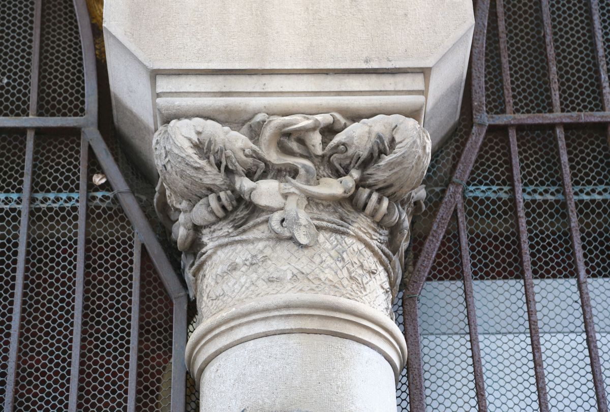 Unser erster Gang führte uns zur historischen Fischhalle mit städtischem Markt – leider zu spät. Die Händler waren am Einräumen, die Halle geschlossen. Uns blieb nur, die Architektur von außen zu bestaunen. So ordnete der Bildhauer Urbano Bottasso steinerne Krebse, Muscheln, Kraken und Fische um die Säulen der Fassade an.