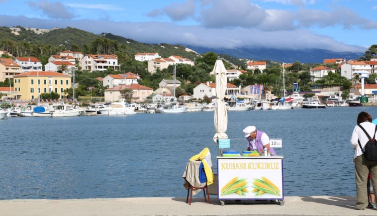 Aber zurück zu unserem Ziel. Die 22 Kilometer lange Insel Rab mit ihren etwa 10 Tausend Einwohnern gehört zu den waldreichsten Inseln Kroatiens. Im Sommer mäßig warm, im Winter mild. Das tolle Klima der Hafenstadt Rab (um die 1.500 Einwohner) schätzten schon die alten Römer.
