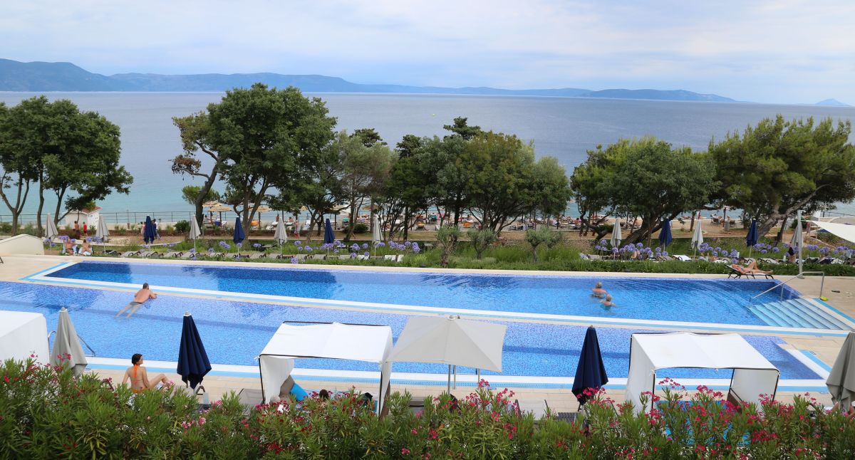 Unser Hotel lag auf einem Hügel mitten einer Parklandschaft. Sehr schön, Blick auf die Raber Bucht, Essen, Pool und Wellnessbereich klasse. (www.valamar.com/en/hotels-rab/imperial-grand-hotel)