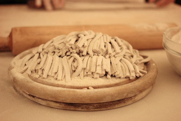 Zum Abendessen besuchten wir das Hotel Combolo, dass unsere Magenkapazitäten mit einem sechs-Gang-Menü an die Grenzen brachte. Als Veggi bekam ich ein anderes Menü, doch das Herzstück, die Pizzocheri della Valtellina, braune Bandnudeln aus Buchweizenmehl mit Kartoffeln und Wirsing, landete auch auf meinem Teller. Das Originalgericht beinhaltet auf 500 Gramm Nudeln, 200 Gramm Alpenbutter und sehr, sehr viel Käse. Da war ich ganz froh um die Veggi-Variante: Pizzoccheri mit Tomatensauce.