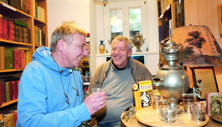 Neben bibliophilen Ausgaben, etwa von Auguste Escoffier, stehen büttengedruckte Originale, handgeschriebene Unikate, kulinarische Enzyklopädien, Magazine und Zeitschriften, Promikochbücher von Sophia Loren bis Vico Torriani, Kriegs- und Nachkriegskochbücher. „Das Stöbern in diesem Fundus ist immer auch eine Art besonderer Geschichtsstunde“, sagen die Antiquare. Nun stöbern Johannes Mohr und Swen Kernemann-Mohr sozusagen auch öffentlich. Für Garcon blättern sie in Kochbüchern aus vergangenen Zeiten und notieren, was sie dabei bewegt.