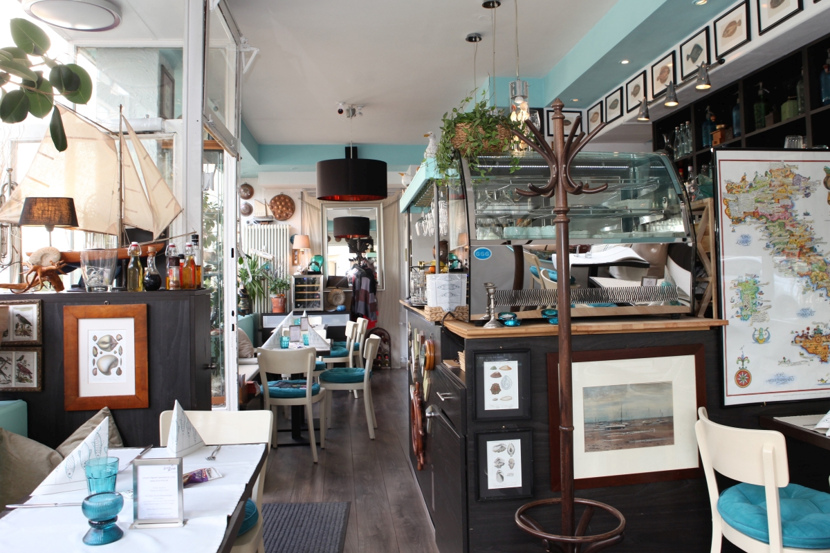 Die drei stärksten Faktoren an diesem winzigen, gemütlichen Lokal mit dem muscheligen Namen: das mediterran luzide Ambiente des Raumes, seine bis zur Decke reichenden maritimen Dekorationen (einschließlich eines originalen Exemplares der namensgebenden Feilenmuschel) und die von urbanen Strömen dieser Gegend umflossene Terrasse. Und natürlich Daniela und Maestro Rosario.