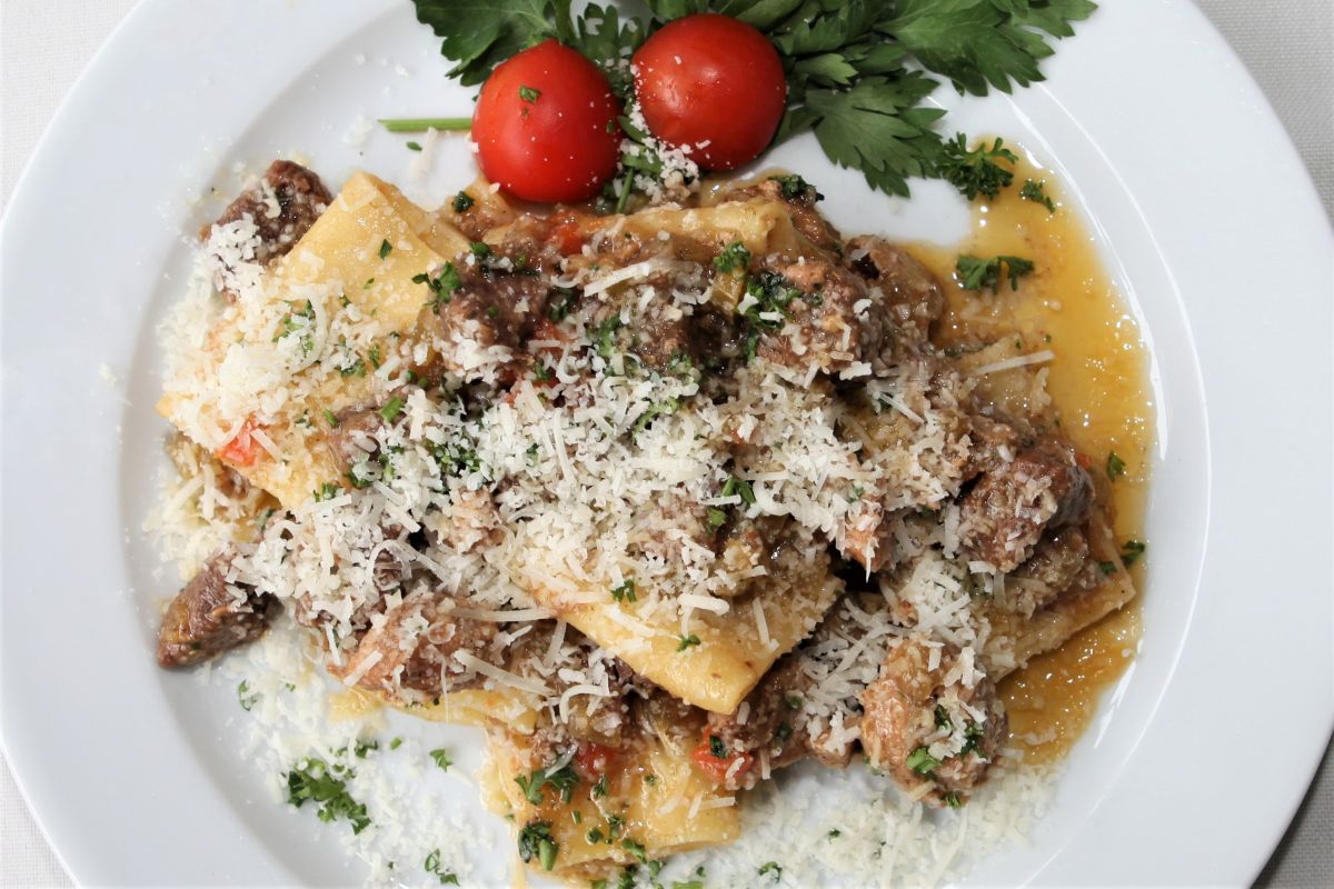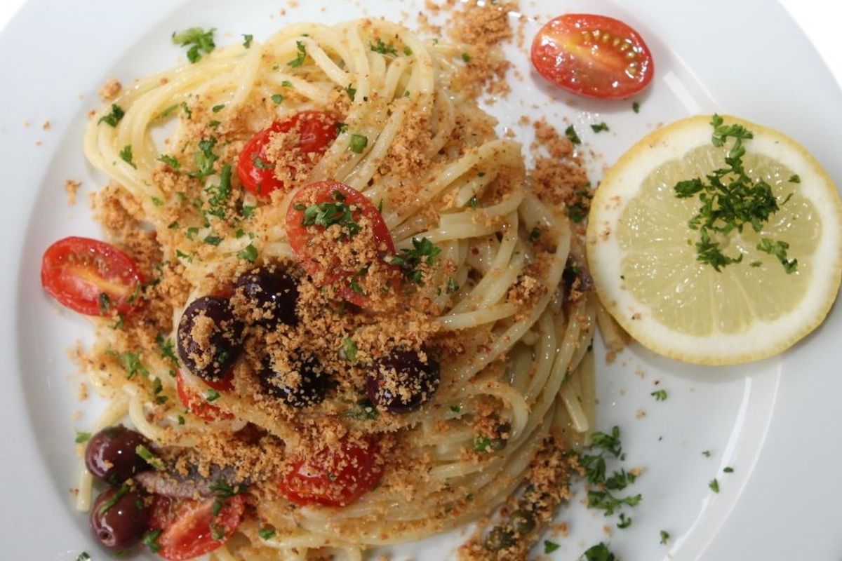 Außer den vegetarischen Grünspargel-Ravioli offeriert De Paola weitere Veggi-Gerichte: Ravioli mit Steinpilzfüllung in Knoblauch-Basilikum-Butter, Ravioli mit Auberginen-Ziegenkäse-Füllung in Tomatensauce, Gnocchi all Sorrentina, Gnocchi all ´Amalfitana und – natürlich – Parmigiana di Melanzane, den berühmten Auberginenauflauf, um dessen Urheberschaft man sich in Italiens Süden immer mal wieder heftig streitet. Für jeden echten Neapolitaner ist die Herkunft des Gerichts natürlich sonnenklar: Sowas kann nur die Cucina Napolitana. Und basta! Gleiches gilt für die Pasta-Gerichte – etwa für Maltagliati al Ragù Napoletano oder für Paccheria alla Genovese. In beiden Fällen bringt De Paola die Teigwarenspezialitäten mit (unterschiedlich zubereiteten) würzigen Fleischsaucen auf die Teller, und die ohnehin äußerst italominded Berliner jubeln: Buono! Buonissimo! Auch wir sagen bravo – was der Küchenchef da macht, hat Stil und jede Menge Traditionsfeeling und ist Versprechen und Erfüllung zugleich. Erfüllung jetzt, Vorfreude auf das, was noch kommt – etwa Spaghetti alla Marinada mit Sardellen, Kirschtomaten, Kapern und Oliven.