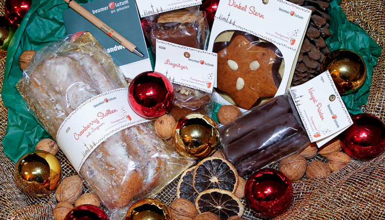Gewinnen Sie eine von drei Tüten mit wundervollem Weihnachtsgebäck von Beumer & Lutum. Freuen Sie sich auf Cranberry-Stollen mit Ingwer, Nougat-Printen, Dinkelstern, Basler Leckerli und mehr.