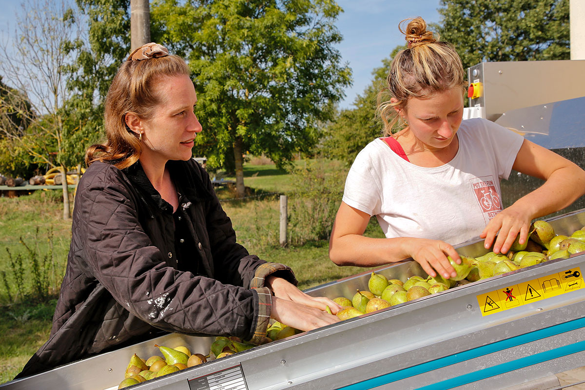 Louise Friedländer stammt aus Köln. Bevor sie zu UMBIO kam, war sie in der Modebranche tätig. Dann entschied sie sich für das wirklich Wichtige. Dem Praktikum in der Uckermark wird ein Studium an der Hochschule für nachhaltige Entwicklung in Eberswalde folgen – Fachrichtung Ökolandbau. Die 33-Jährige serviert routiniert die UMBIO-Fakten. Man merkt, sie ist den Umgang mit Journalisten gewohnt. Wir notieren: UMBIO bewirtschaftet 22 Hektar, größtenteils Streuobstwiesen, mit über 100 alten und einigen neuere Apfelsorten. Altländer Pfannkuchenapfel, Landsberger Renette, Rheinischer Bohnapfel, Jakob Fischer, Signe Tillisch, Kaiser Wilhelm, Boskop, Gelber Richard, rund 1.000 Hochstämme.