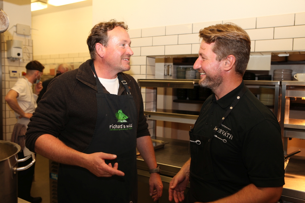 „Obwohl einige Ihrer Kollegen uns immer mal wieder in diese Schublade packen – aber wir sind kein vegetarisches Restaurant. Stark gemüseorientiert, das trifft es schon eher. Dass wir bei Gerichten, in denen Fleisch mitspielt, gerne auf Wild setzen, liegt auf der Hand. Wildfleisch ist aromatisch, fettarm und, weil die Tiere buchstäblich wild leben, auch komplett bio. Außerdem kommt es aus der Region, über Nachhaltigkeit muss man also nicht reden. Wir bevorzugen in der Horváth-Küche das helle Fleisch jüngerer Tiere und sind damit bei Guido Richard und seiner Wildmetzgerei in Dannenwalde an der richtigen Adresse. Ich kaufe übrigens auch privat in seinem Hofladen ein – Wildmerguez zum Beispiel – weil seine Leute ein wirklich gutes Händchen für die Würzung haben.“