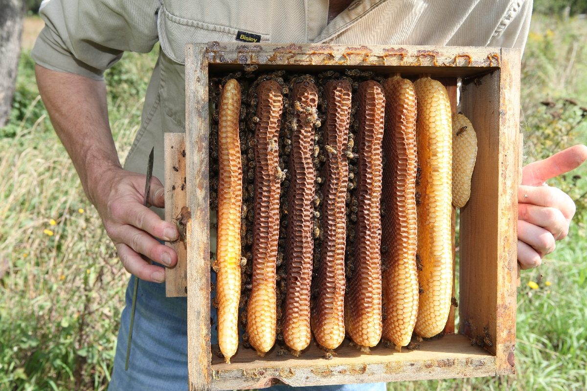 Während seine konventionellen Imkerkollegen rund 30 bis 90 Kilogramm Honig pro Volk und Jahr ernten, sind es bei Beckmann lediglich 10 Kilogramm – „und das erst nach drei Jahren, weil erst nach dieser Zeit ein Bienenvolk zum ersten Mal Überschuss produziert.“ Wenn die Bienen dann die gesamte Wabe freigeben, wird der Honig aus der Wabe gepresst, was den Vorteil hat, dass er große Mengen an Propolis und Bienenbrot enthält. „Das macht den Presshonig ganz besonders wertvoll“, so Beckmann.