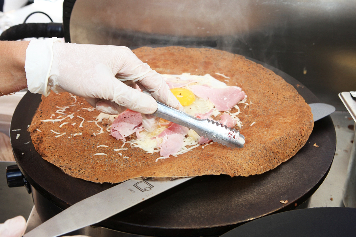 In Paris beispielsweise sind seit einigen Jahren die so genannten BILIG-Mobile unterwegs, flinke, elektrobetriebene Dreiräder, aus­gerüstet mit einer Crêpes-Platte und einem Kühlschrank, die an vielen Ecken Galettes anbieten – Buchweizenpfannkuchen mit Spiegelei, Schinken und Käse, mit Gemüse, manchmal sogar mit Fisch. Streetfood à la française.