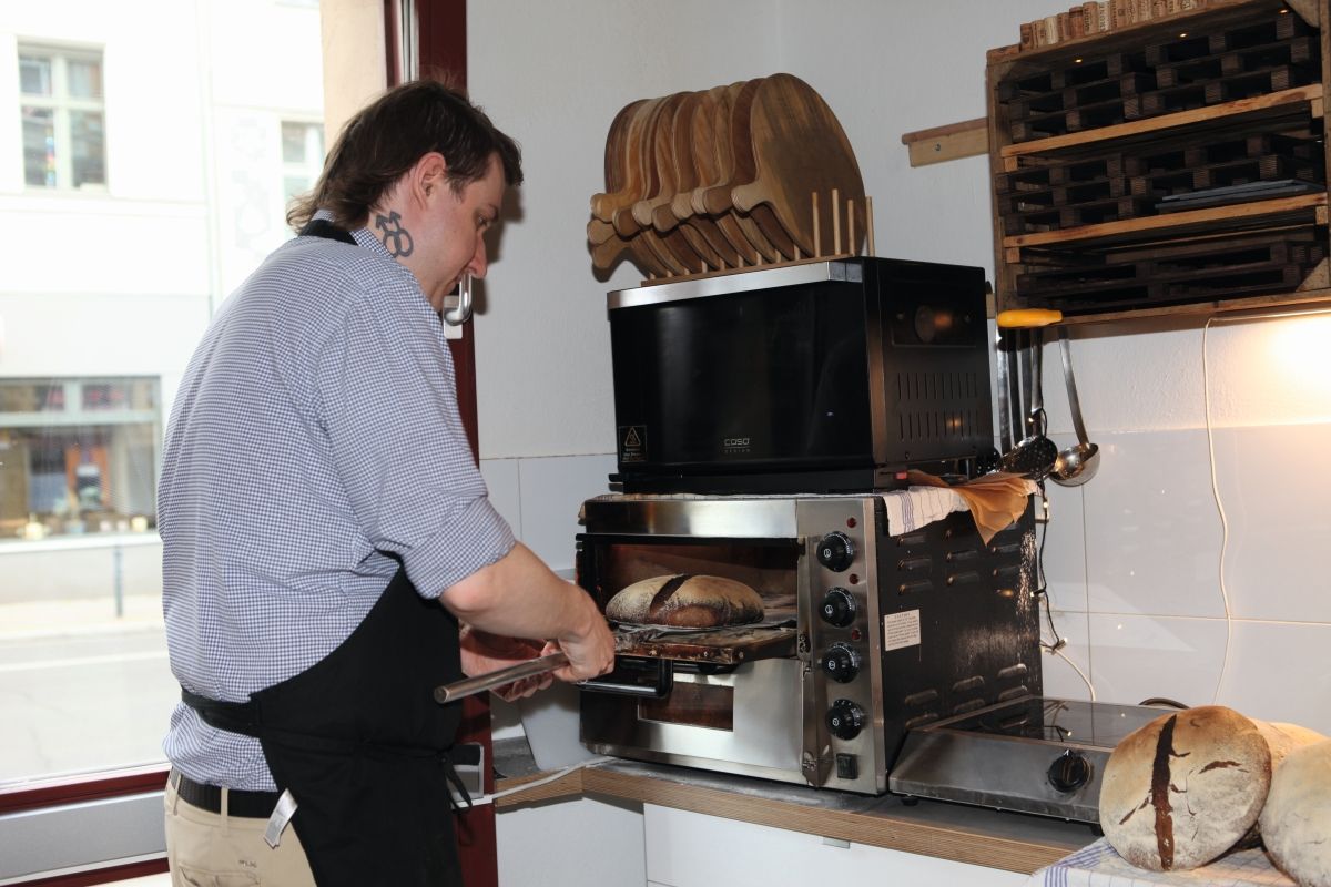 Nach einer gefühlten Ewig-Pause spricht er dann doch noch über den Wert lokaler Mehle, den hauseigenen Sauerteig, dessen tagesfrische Führung und die ausschließlich händische Aufarbeitung. Und er bekennt schließlich sogar – ganz und gar untypisch Marx – wie stolz er auf das Gästelob ist: „Jeder Zweite will bei mir Brot kaufen.“ Das entging natürlich auch Serhat Aktas nicht, und als das Angebot, auch den Nachbarladen zu übernehmen, auf seinen Tisch kam, griff er beherzt zu. In Kürze wird der Weinlobbyist also noch mit einem Brot- und Weinhandel an den Start gehen, und Ronny Marx wird dort sicher neben seinen starken Laiben auch ein paar delikate Aufstriche im Glas anbieten.