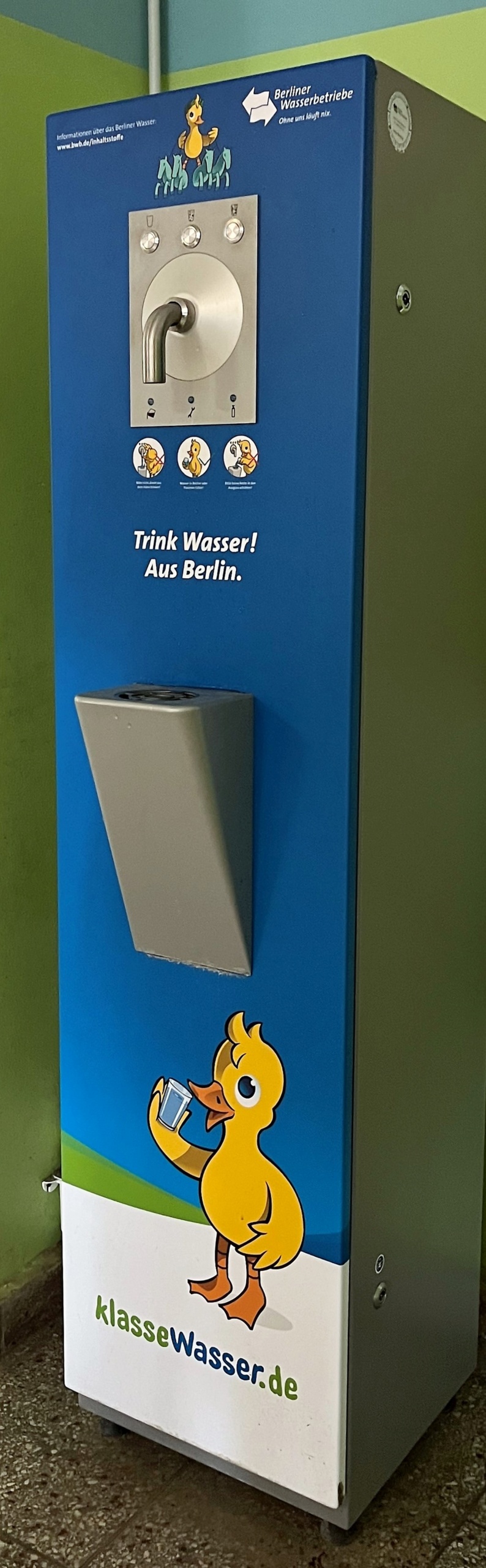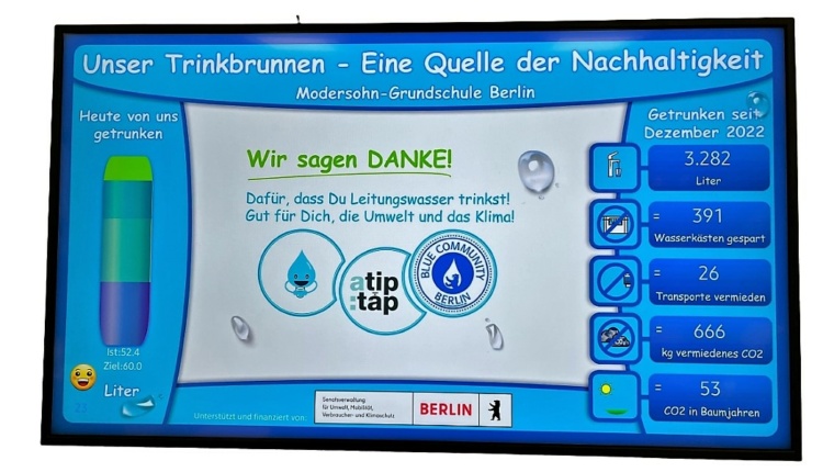 Auf einem Monitor im Schulfoyer sowie auf der Schulwebsite wird dann genau zu sehen sein, wie viel Berliner Wasser Schüler:innen und Lehrer.innen trinken und wie viel CO2 dadurch vermieden wird. Durch die digitale Echtzeit-Visualisierung können die Kinder ihren täglichen Wasserverbrauch kontrollieren und sicherstellen, dass sie ausreichend trinken. Denn ausreichendes Trinken ist wichtig für die Gesundheit und kann zum Beispiel Kopfschmerzen vorbeugen. Gleichzeitig zeigt ihnen das Projekt, wie viel CO2 durch die Verwendung der Spender und den Verzicht auf Flaschenwasser insgesamt eingespart werden konnte.