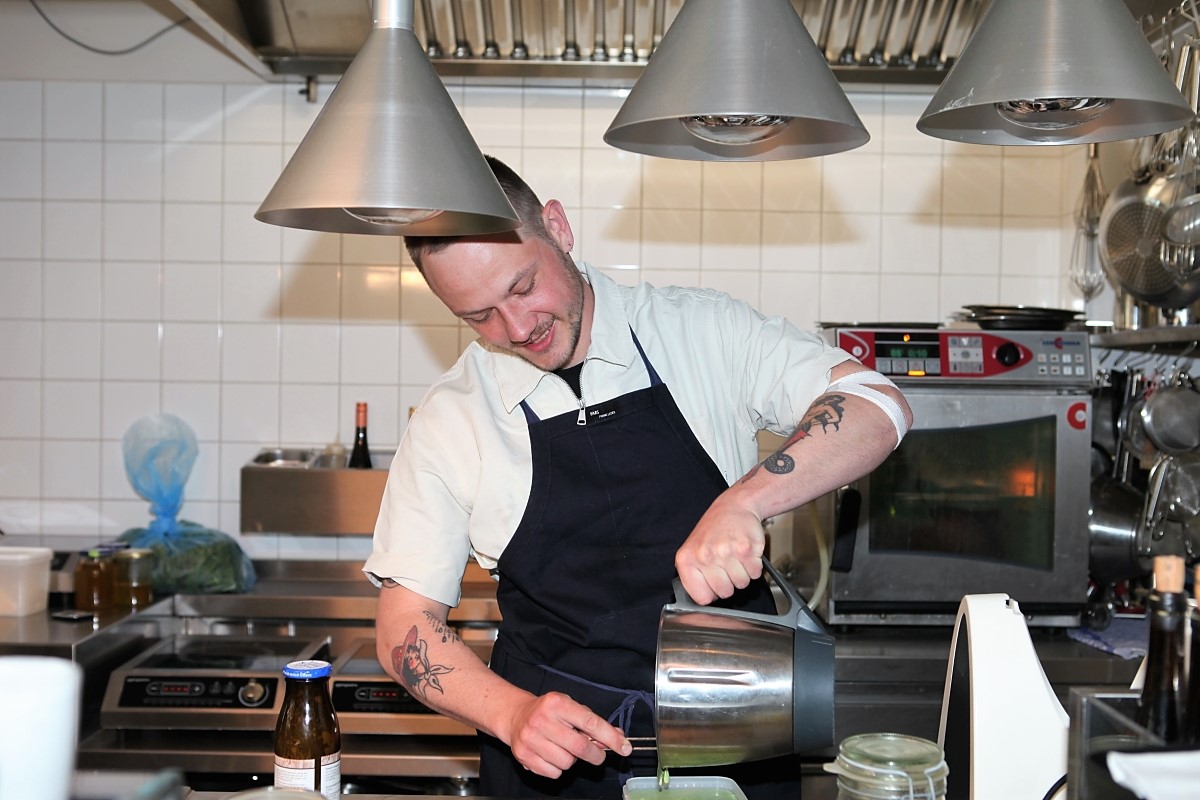 Natürlich ist dieser Teller nicht das einzige Beispiel für die verblüffend leichte, geradezu beschwingte Pars-Küche. Da ist der gebeizte und in Molke pochierte Saibling, der von seiner separat frittierten Haut und einem fruchtigen Holunderschaum eskortiert wird, das sind die fluffigen Brennesselknödel, die mit einer Beure blanc und frischem Brennesselsalat auf die Teller kommen und so schmecken, wie man Knödel kaum noch kriegt, und da werden Desserts serviert, die erfrischend anders, aber genau richtig schmecken – pochierter Rhabarber mit Estragoneis und Schlagsahne beispielsweise, das hat was und passt so gut, dass die Gäste schon mal spontan applaudieren. Kristiane Kegelmann, die das Pars-Restaurant seit gut sieben Monaten treibt, managt auch den Service und ist eine Art Ideal der perfekten Gastgeberin. Obwohl sie den Job nie gelernt hat, gelingt es ihr spielerisch, eine derart sympathische Atmosphäre zu schaffen, die den Aufenthalt im Pars einem Wohlfühlurlaub gleichkommen lässt.