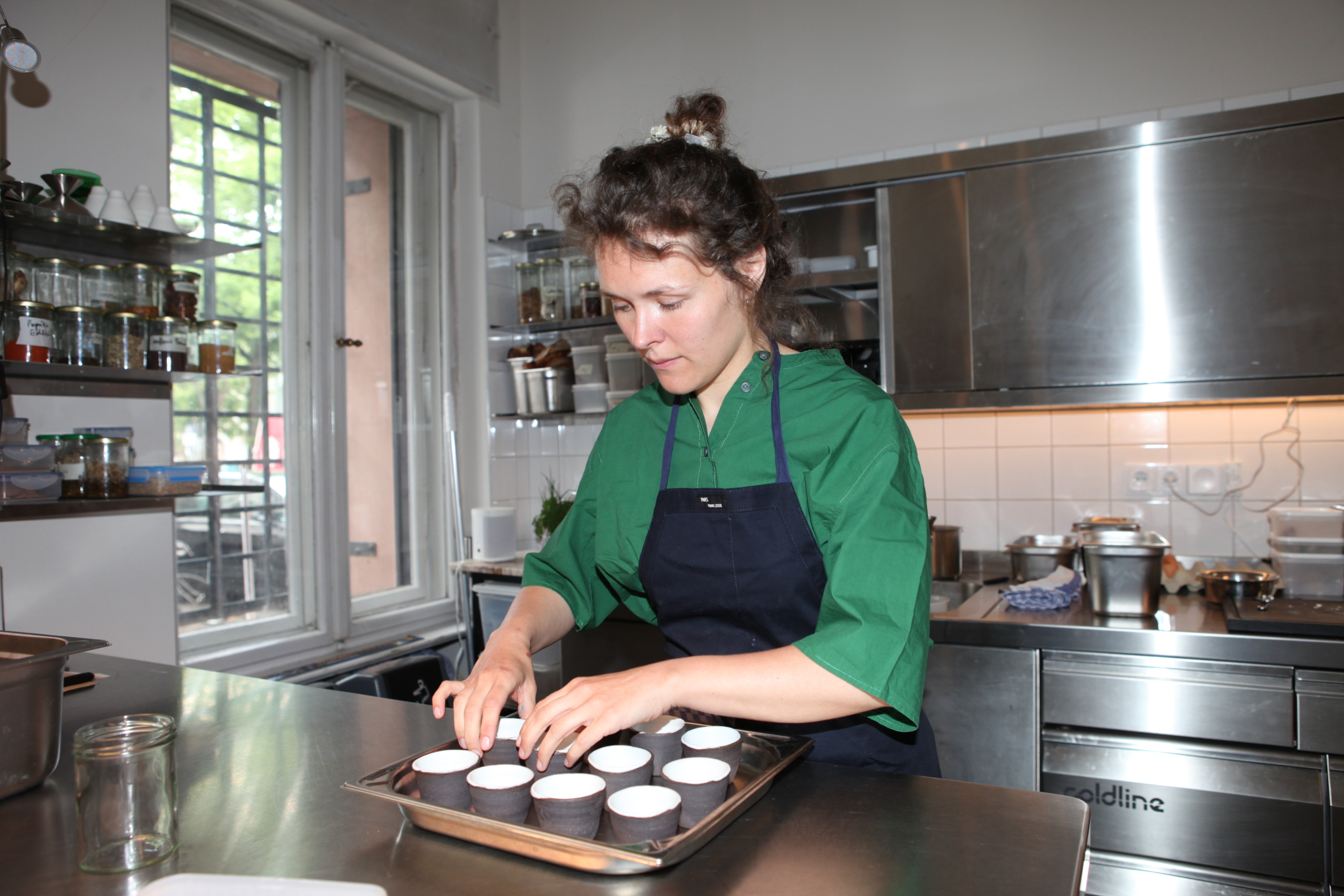 Die Hamburgerin Alina Jakobsmeier ist die Chefin am Herd, Florian Zeißig, Berliner, ihr Sous Chef. Man merkt es schnell, die beiden 31-Jährigen sind ein ziemlich geniales Team. Alina Jakobsmeier hat in ihrer Heimatstadt Konditorin gelernt und den Meister gemacht, ganz klassisch, mit Sahne- und Hochzeitstorten. Während eines Praktikums 2013 beim Demel, dem Mekka des süßen Wien, lernte sie Kristiane Kegelmann kennen, die damals in der ehemaligen K&K-Hofzuckerbäckerei den Dekorposten leitete. Die beiden Konditorinnen blieben in Kontakt. 2018 wechselte Alina Jakobsmeier ins Hamburger Nobelhotel Vier Jahreszeiten. „Dort bin ich dann so peu à peu in die Kocherei reingerutscht“, erzählt sie. Drei Jahre später kam sie nach Berlin, arbeitete zunächst in Kegelmanns Pralinenmanufaktur und folgte ihr dann ins Pars Restaurant und brachte dessen Küche auf Kurs. Folgerichtig verlieh der Gault & Millau Alina Jakobsmeier den Next-Generation-Preis, und die Berliner Meisterköche-Jury nominierte sie für den Titel „Aufsteigerin 2023“