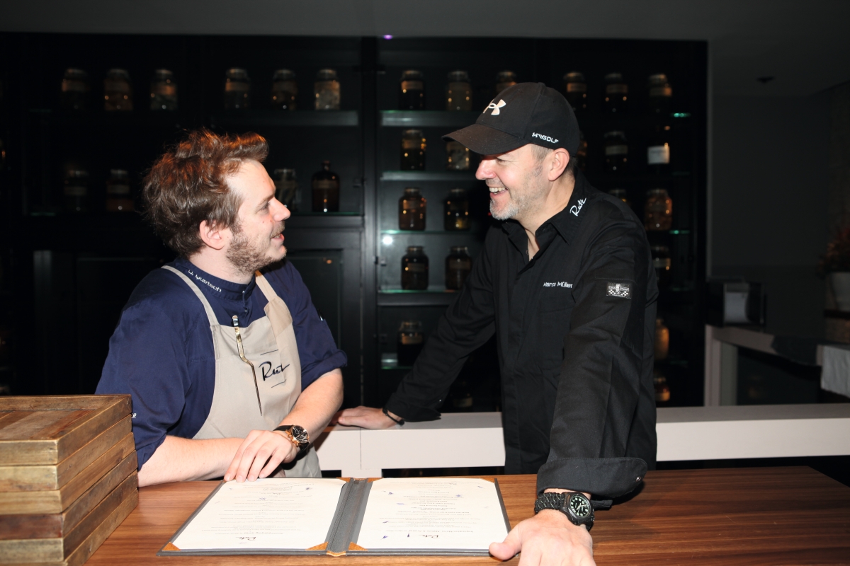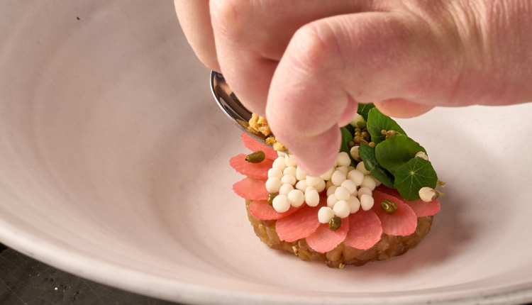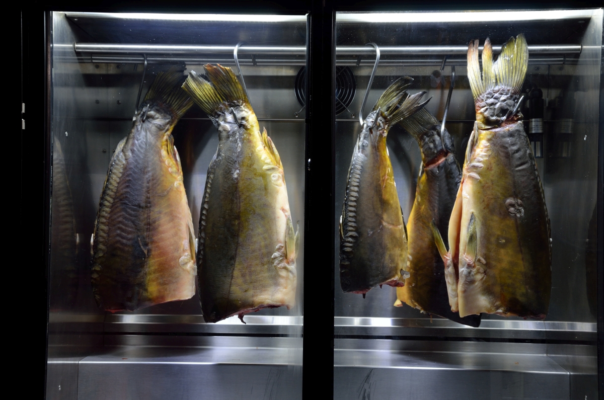 Im Rutz, Berlins einzigem 3-Sterne-Restaurant, geht es um höchste Kreativität, perfektes Handwerk, um eine leichte, ausgewogene Küche, die auf Kontraste, klare Geschmacksbilder und auf Nachhaltigkeit setzt. Ein Beispiel: Karpfen dry aged, Garum Holunder. Dafür hängt der Ike-jime-geschlachtete Karpfen vier Tage lang bei zwei Grad Celsius im Reifeschrank, danach wird das Fleisch des Rückenstranges zu Tartar verarbeitet, der Bauch gegrillt, aus dem Mittelstück und dem Schwanz werden Chips. Der Rogen wird zu Kaviar, aus dem Rest entsteht nach neunmonatiger Fermentation das Garum. Der Karpfen stammt aus der Müritz, Lieferant sind die Müritzfischer.