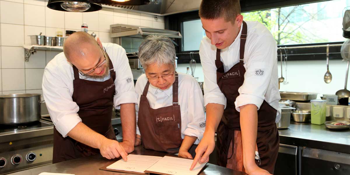 Nach der „kulinarischen Aufrüstung“ des QIU gibt es im Mandala-Hotel nun für Menschen, die Essen nicht nur als schlichte Sättigung betrachten, zwei Lunch- und zwei Dinnerangebote. Mittags im Facil etwa drei Gänge für 88 Euro und alternativ im QIU ebenfalls drei Gänge für 39 Euro. Abends kann man im QIU für den gleichen Preis speisen oder eben im Facil das fünf- bis achtgängige Gourmetmenü für 238 bis 295 Euro genießen (das Facil ist allerdings nur montags bis freitags geöffnet, das QIU auch samstags und sonntags).